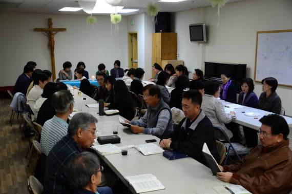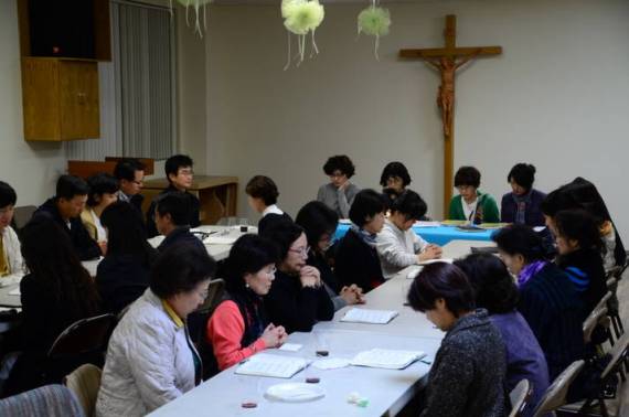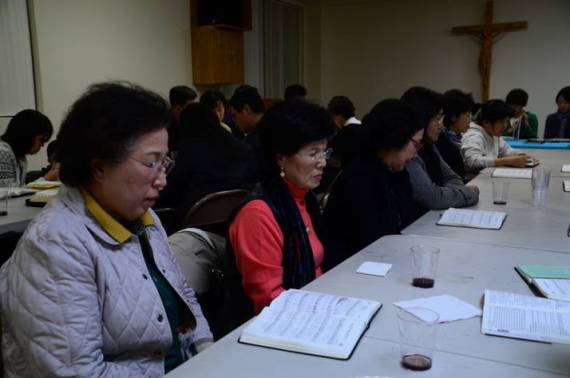 “11월17일 금요일 7시에 토렌스 남 구역의 1,2,3 반원들이 성당강당에서 수녀님을 모시고 구역모임을 가졌습니다.” 현재 토렌스남 구역의 구역장님은 이 희경 크리스티나 자매님, 1반 반장은 최 경숙 수산나 자매님, 2반 반장은 박 정람 마르시아 자매님, 3반 반장은 김 희연 루시아 자매님 입니다”