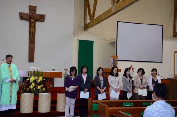 “한글학교 새 학기 교사 임명장 수여식이 오늘 9:30 분 학생미사에서 있었습니다. 백삼위 성당 한글학교는 훌륭하신 인격과 전문성을 지닌 8분의 교사로 이루어져 있으며 한국의 문화와 언어를 중점적으로 가르쳐 자녀들의 이중언어와 정체성을 키우는데 많은 공헌을 하고있습니다. 한글학교는 원래 교우자녀들을 위해서 만들어졌지만 현재는 교우가 아닌 외부자녀들도 등록신청이 늘어나고있는 추세입니다. 현재 한글학교 학생은 총 80명정도이고 한글학교 수