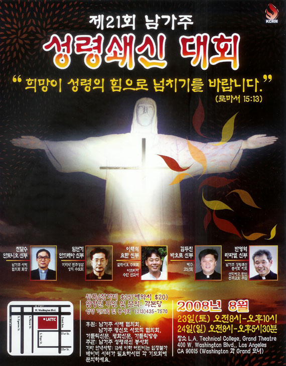 [주요행사] 제21회 남가주 성령쇄신 대회 페이지 정보 작성자 : 관리자 작성일 : 2008-07-20 조회수 : 1,789 목록 본문 "희망이 성령의 힘으로 넘치기를 바랍니다." (로마서 15:13) 이전글세례식 (06/29/08) 08.08.09 다음글방부억 신부님 성령세미나 08.06.08 LIST