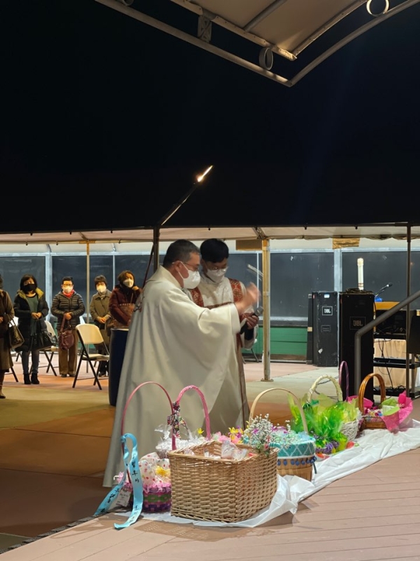 4월 3일 밤,  백삼위 성당에서 진행된 부활성야 미사 모습입니다.