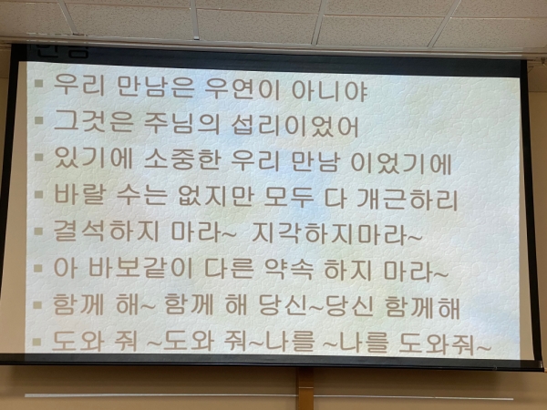 매주 화요일 2회 강의와 중간 토의를 통해서 성경에 대한 더 깊은 이해를 통해 주님께 가까이 다가가고자 하는 형제, 자매님들의 열기로 가득한 첫수업이었습니다.
