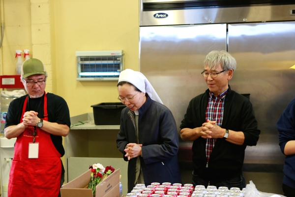 매월 2째주 일요일에 Catholic Charity를 통하여 봉사를 하고 있는 빈첸시오회에서는 Mother's day를 겸한 이번 주일에는 어려운 이웃들에게 식사와 함께 꽃을 전달하였습니다. 꽃을 받은 사람들은 환한 미소로 답을 하며 감사를 표시하였습니다.