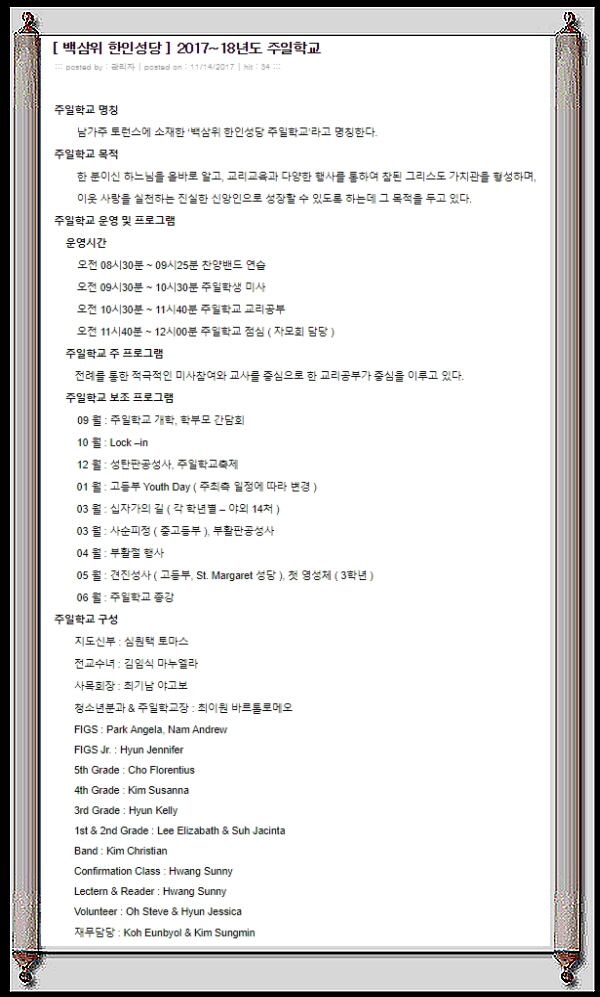 [주요행사] [주일학교] 안내 페이지 정보 작성자 : 관리자 작성일 : 2017-11-30 조회수 : 1,666 목록 본문 주일학교 크리스마스 행사 - 일정 : 12월 16일 토요일 오후 2시~4시 이전글[홈피 관리위원회] 홈페이지 17.11.30 다음글[부음공시] 故 차병용 클레멘스님 17.11.29 LIST