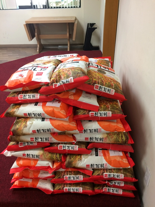 2) 미사후 어르신(70대이상)들에게는 감사의 뜻으로 쌀 1포를 나누었습니다.
