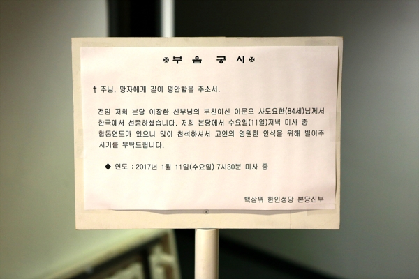 고인의 영원한 안식을 위하여 기도 드려주시기 바랍니다.