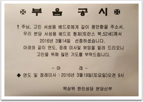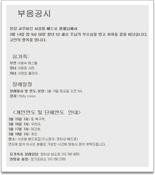 [주요행사] [부음공시] 故 서성용 베드로님