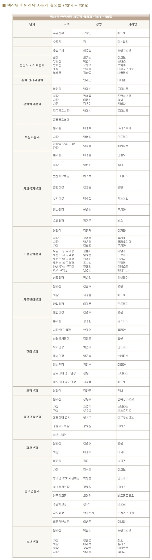[주요행사] [사목회] 감사합니다.(2014~ 15년)