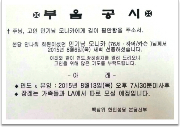 [주요행사] [부음공시] 故 민기남 모니카님