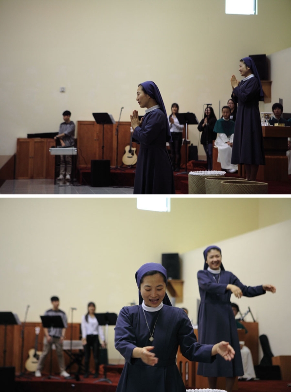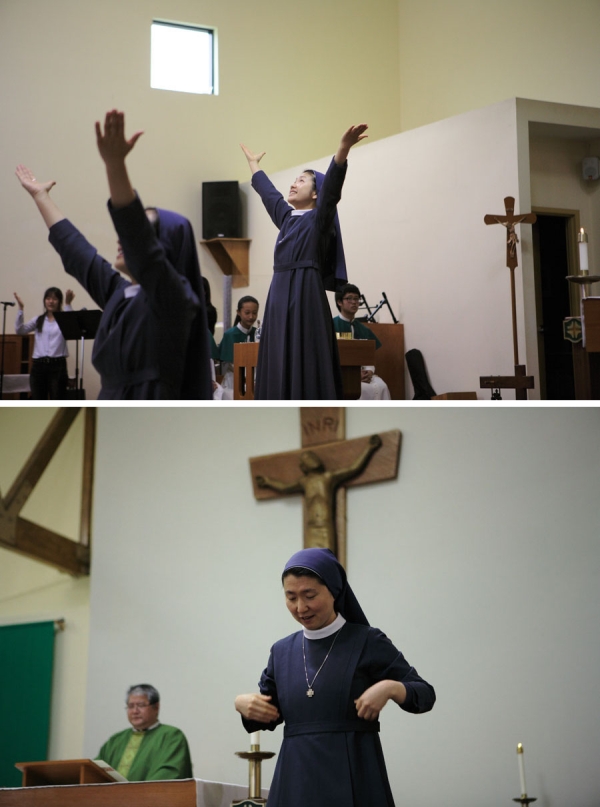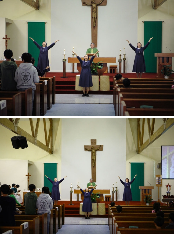 바오로딸 수도회의 수녀님들께서 오늘 학생미사 시간에 율동찬미를 준비해 주셨습니다.