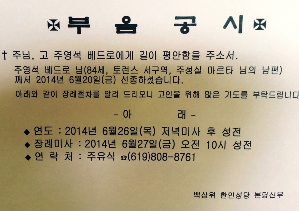 [주요행사] [부음공시] 주영석 베드로님