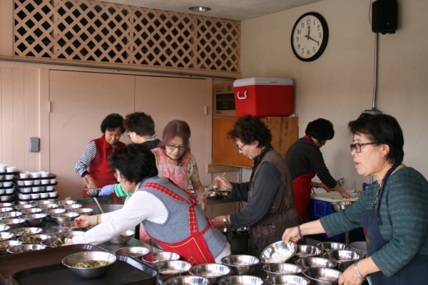 오늘 주일 (2월9일) 낮 미사후 안나회 (회장 한춘선 루시아) 에서 전신자에게 무료로 "우거지 콩나물 국밥" 을 대접했습니다. 많은 단체에서 봉사자들이 같이 하였습니다.